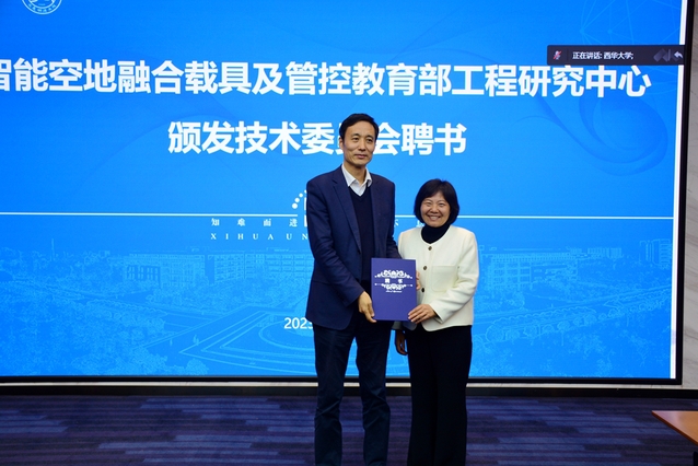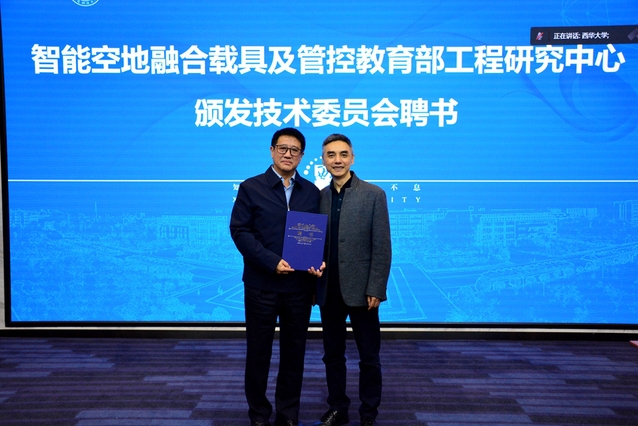 会议现场还举行了智能空地融合载具及管控教育部工程研究中心技术委员会委员聘书颁发仪式。政协四川省第十二届委员会教育委员会副主任边慧敏、副校长李秋实分别为16名委员颁发了聘书。